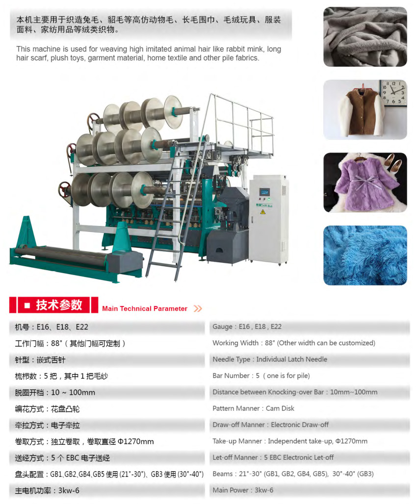 SGE2282 High Density Long Pile Fabric Warp Knitting Machine With Double Needle Bars