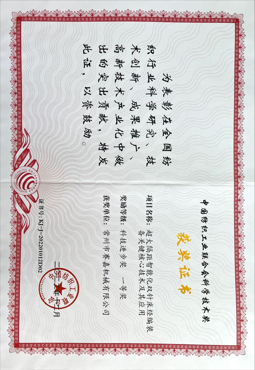 中國紡織工業(yè)聯(lián)合會科技進(jìn)步一等獎